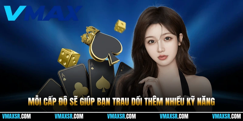 Nền tảng trải nghiệm như VMAX cung cấp nhiều mức cược để người chơi tăng dần độ khó. Từ các bàn nhỏ, game thủ có thể nâng cấp lên những bàn lớn hơn để thử thách bản thân. Mỗi cấp độ mang lại kinh nghiệm khác nhau, giúp bạn hoàn thiện phong cách chơi và tự tạo dấu ấn riêng trong từng ván bài.